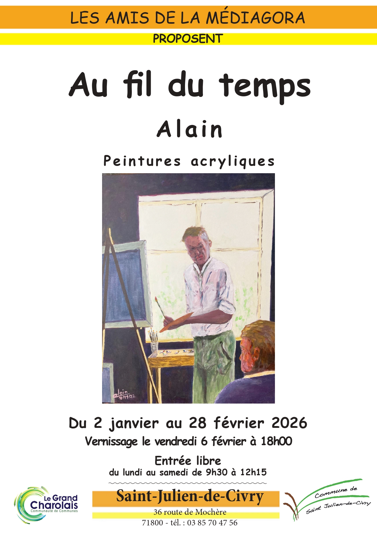 Exposition à la Médiagora du du 2 Janvier au 28 février : Peintures acrylique " Au fil du temps"